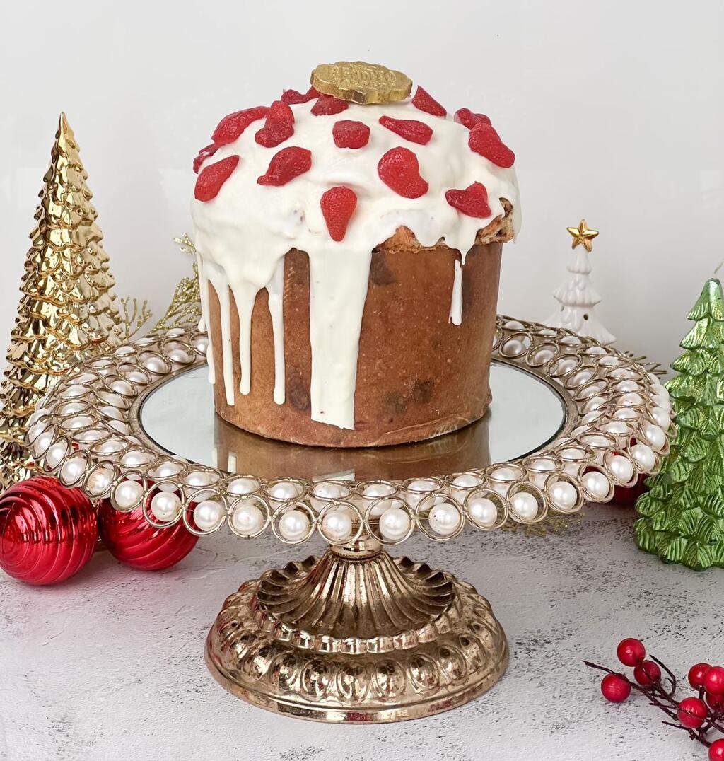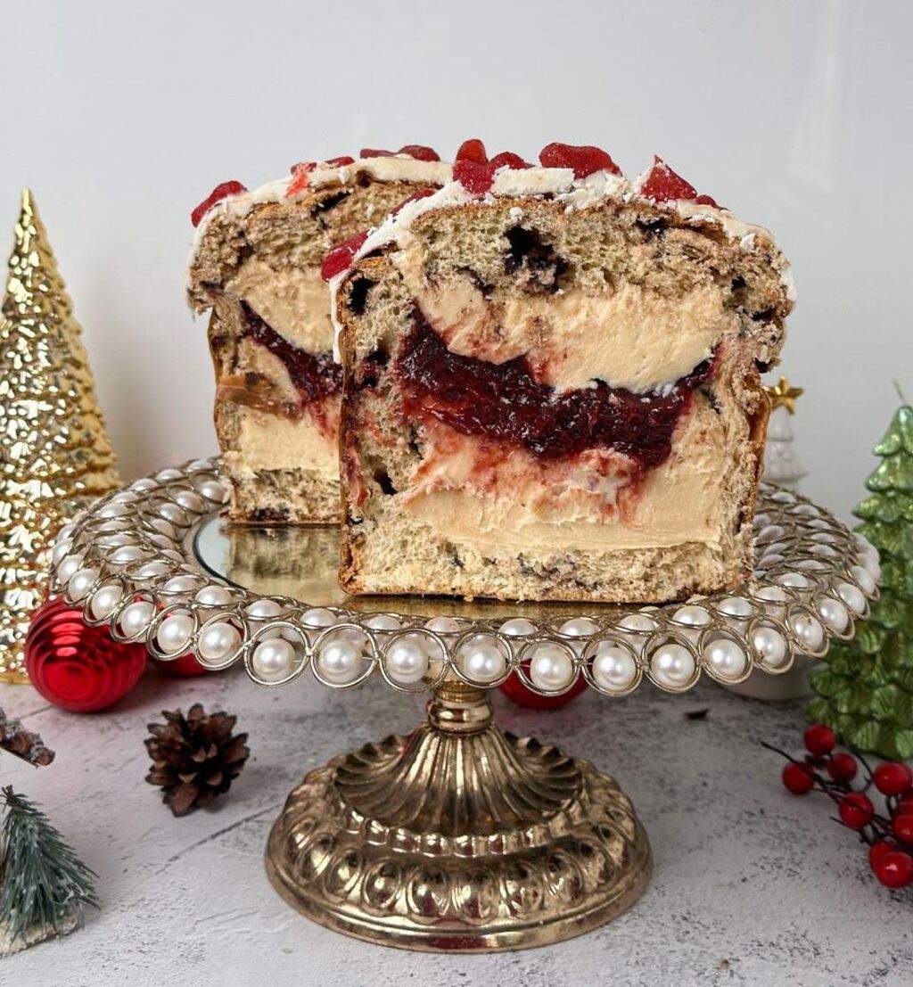 Nosso chocotone Premium Artesanal e ZERADO de essências artificiais, feito com essência de fabricação própria, 100% natural, com ingredientes Premium e sem conservantes, ricamente recheado com Brigadeiro Gourmet Cremoso de Leite Ninho e Geleia de Morangos Glaceados Premium.