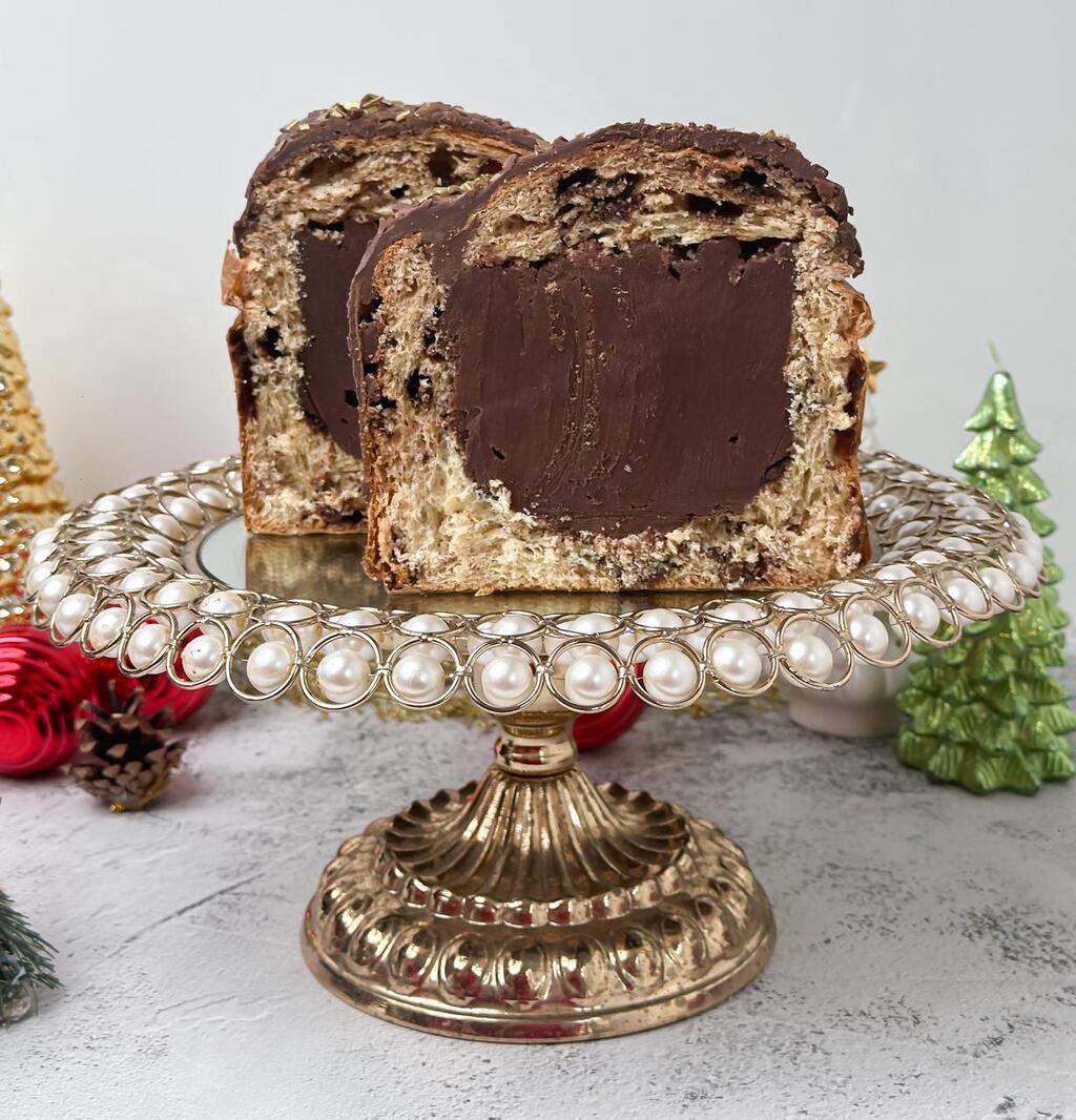 Nosso Chocotone Premium Artesanal e ZERADO de essências artificiais, feito com essência de fabricação própria, 100% natural, com ingredientes premium e sem conservantes, ricamente recheado com Ganache Nobre de Chocolate Ao Leite.