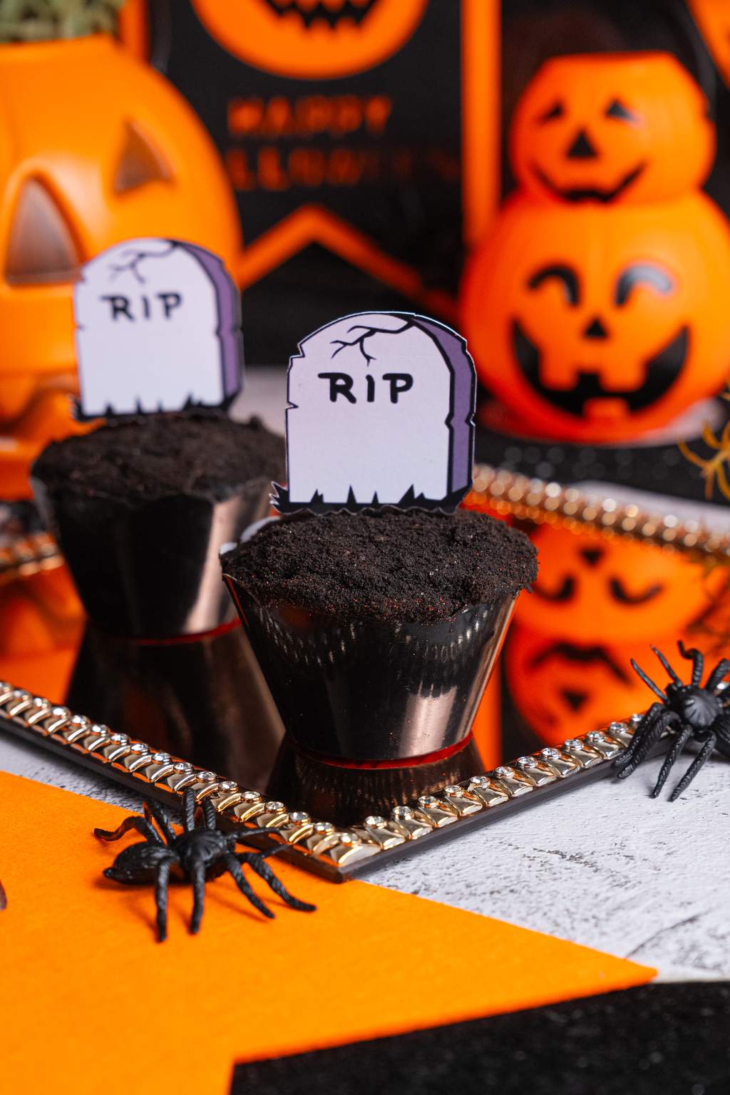Nossos deliciosos cupcake com massa fofinha de baunilha, recheio de Brigadeiro Gourmet Cremoso e Cobertura de Chantilly de Leite Ninho com tema Halloween.