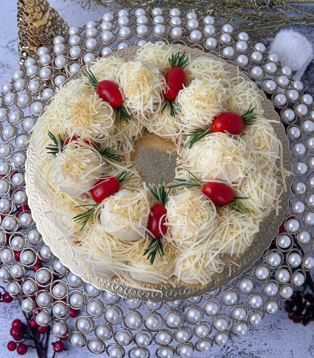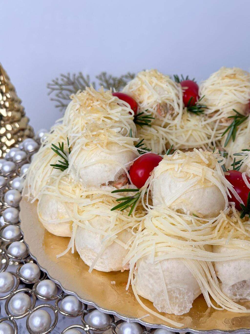 Nossa maravilhosa Guirlanda de minilícias, sabor Salpicão, lindamente decorada com Queijo Parmesão, Bata Palha, Tomates Cereja e Alecrim. Um produto diferenciado que vai deixar sua mesa um arraso!