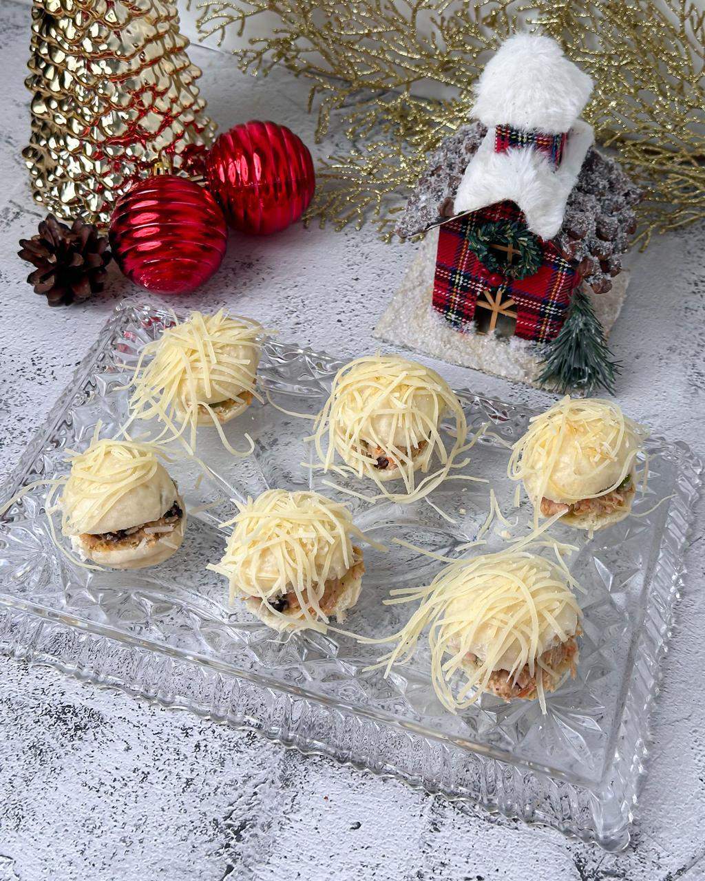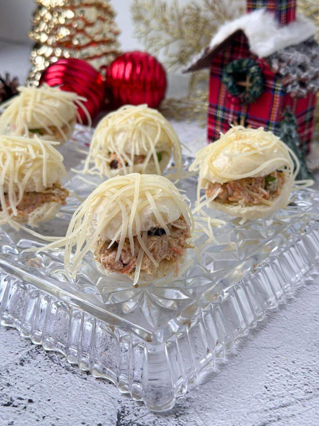 Nossa massa fofinha, aveludada é inconfundível de pão delícia com recheio incrivelmente especial de Salpicão lindamente decorado com Queijo Parmesão e Batata Palha.